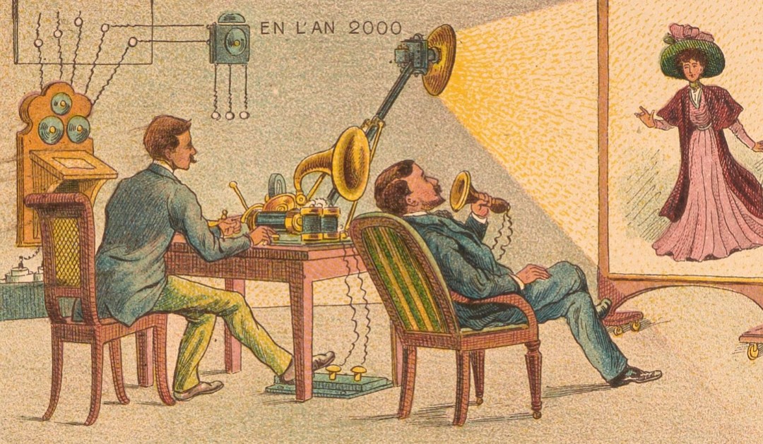 Taken from "In the year 2000", a series of futuristic pictures by Jean-Marc Côté released in France between 1899 and 1910. Source: Gallica.